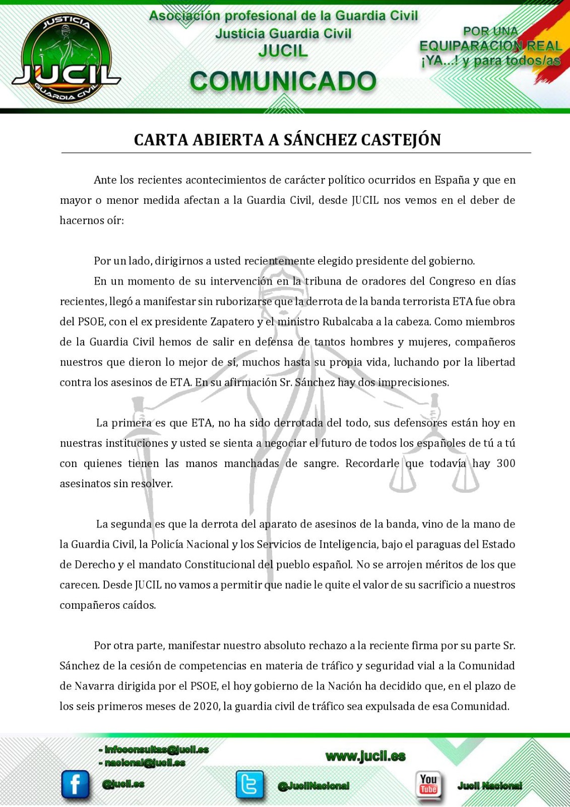 Comunicados CARTA ABIERTA A SÁNCHEZ CASTEJÓN by Secretario Nacional Afiliaciones y Nuevas Tecnologías 8 enero, 2020 Publicado por Secretario Nacional Afiliaciones y Nuevas Tecnologías 8 enero, 2020 0 comentario 0 FacebookTwitterWhatsappTelegramCopy LinkEmail