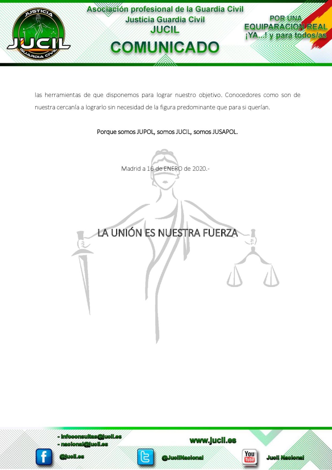 Comunicados EN 2020, LA UNIÓN SEGUIRÁ SIENDO NUESTRA FUERZA by Secretario Nacional Afiliaciones y Nuevas Tecnologías 1 enero, 2020 Publicado por Secretario Nacional Afiliaciones y Nuevas Tecnologías 1 enero, 2020 0 comentario 0 FacebookTwitterWhatsappTelegramCopy LinkEmail