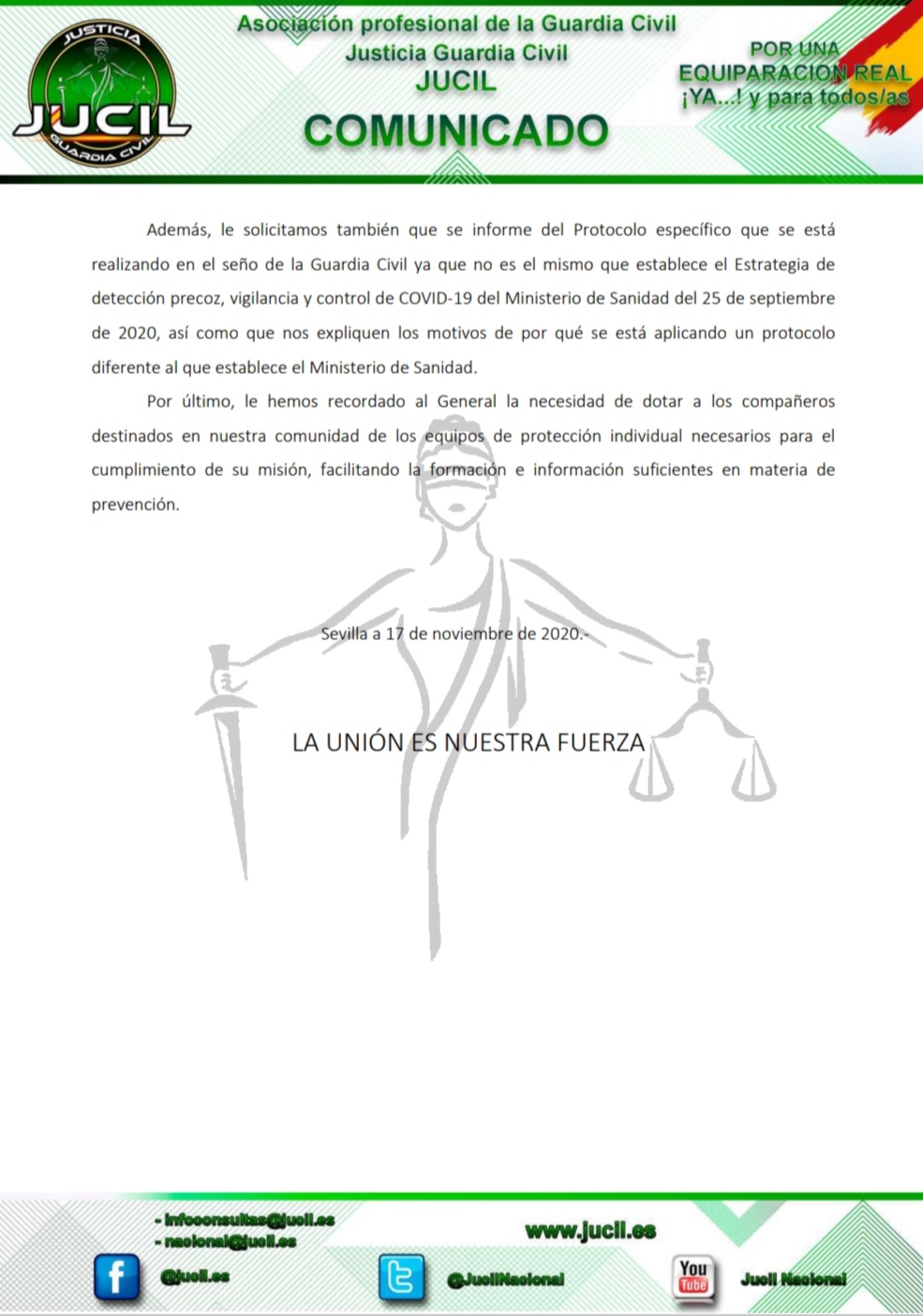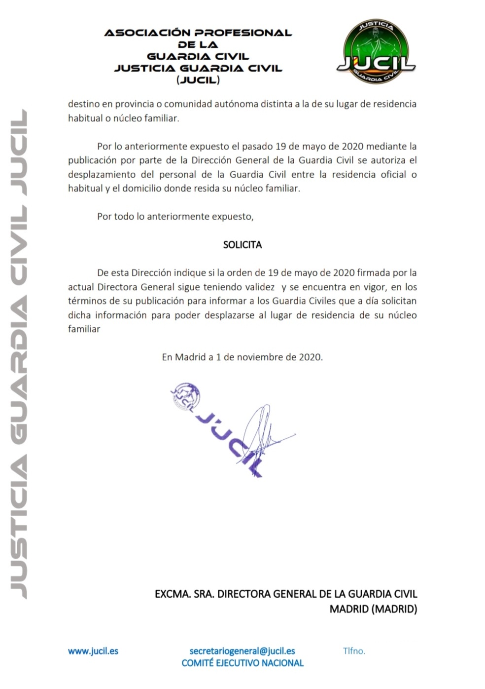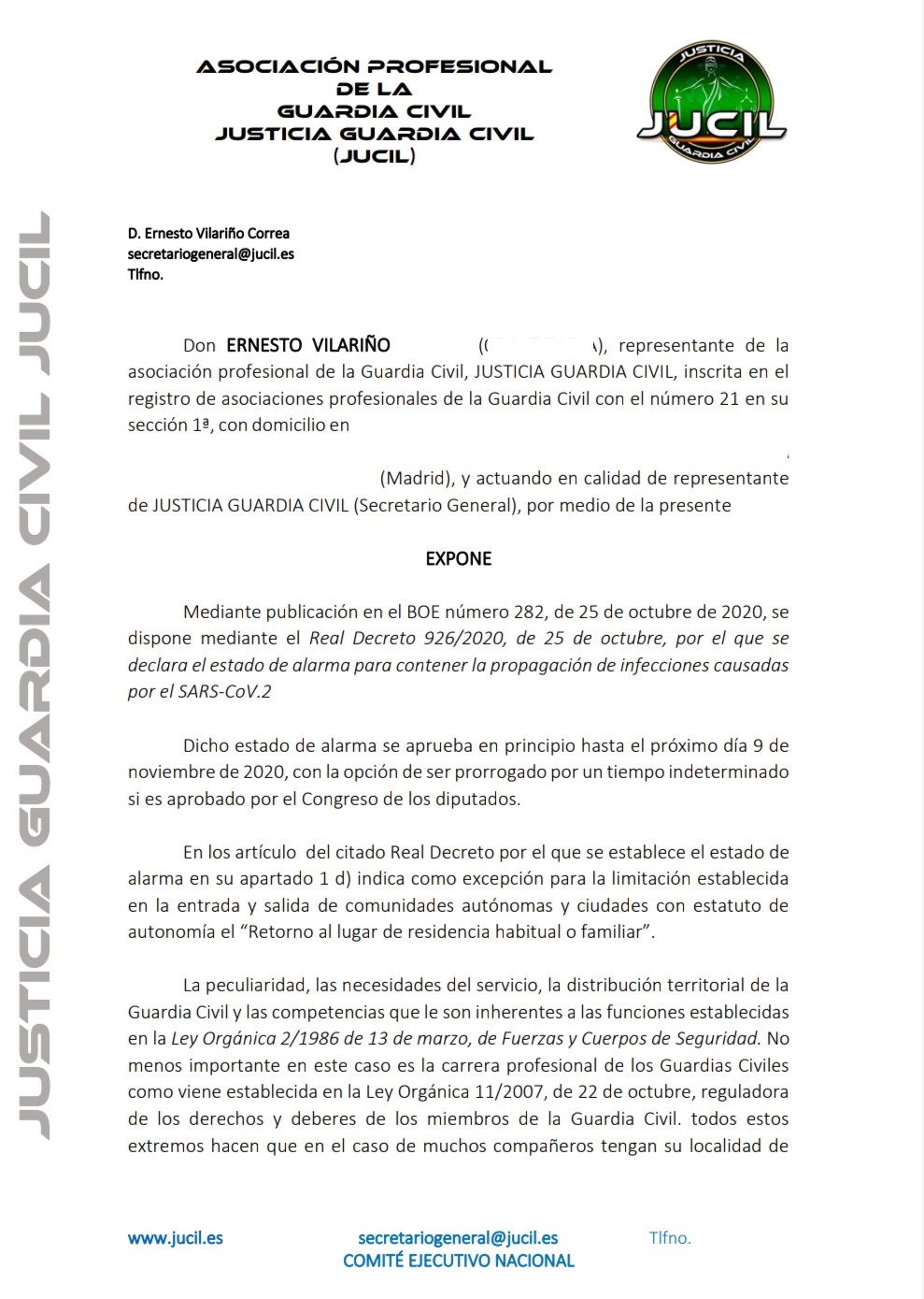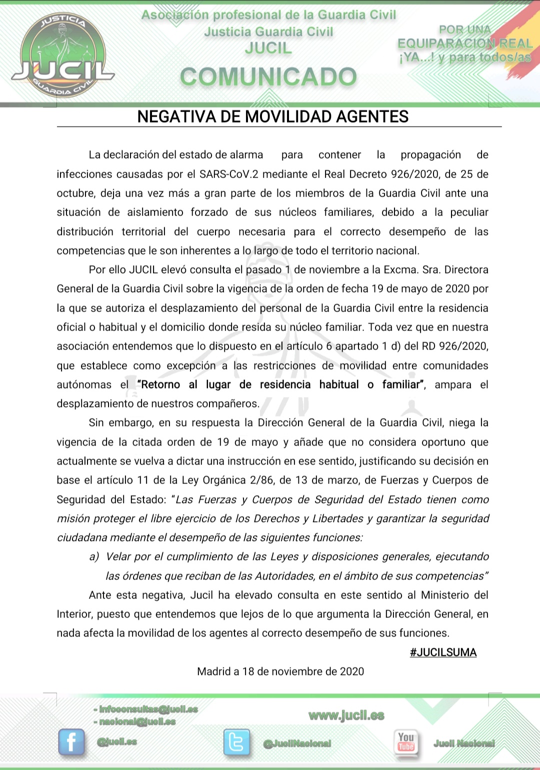 Todo esto se lo debo no sólo a mi familia sino a JUCIL, al sentirme asesorado y respaldado en todo momento, a nivel nacional y , en particular, a nivel provincial. Por ello, mi más profundo agradecimiento a los servicios jurídicos de JUCIL y, muy especialmente, a los representantes provinciales de Canarias que hasta ahora sólo he tenido el placer de conocerlos por teléfono y por su nombre de pila, Sergio y Carlos, pero que a su vez los he sentido tan cerca de mi gracias al apoyo desinteresado que me han mostrado durante todo este tiempo.