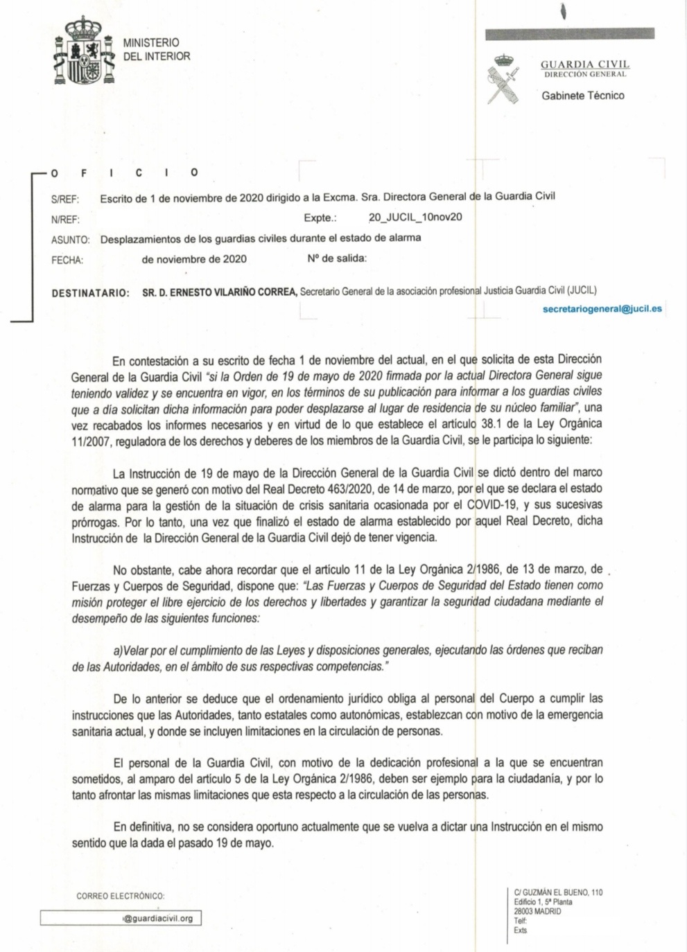En febrero de 2019 me notificaron un injusto – a mi modo de entender los hechos – expediente sancionador por la presunta comisión de una infracción grave al régimen disciplinario de la Guardia Civil por una supuesta comisión de “abuso de la autoridad en el ejercicio del cargo (art. 8.2)”, pero este expediente se archivó por caducidad y sin responsabilidad debido al incumplimiento de los plazos legalmente establecidos (art. 55), notificándomelo en septiembre del mismo año.