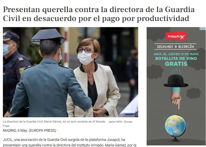 Por ello el pasado día 30 de abril se interpuso querella a la Directora General de la Guardia Civil por un presunto delito de malversación de fondos públicos, prevaricación, administración desleal y apropiación indebida. Se entiende que se realiza una interpretación errónea por parte de la DGGC, con el consentimiento expreso del Ministerio del Interior, al aplicar estos fondos mediante una Orden General, concretamente en la Orden General num. 4, de 12 de febrero de 2021, por la que se regulan los incentivos al rendimiento del personal de la Guardia Civil.