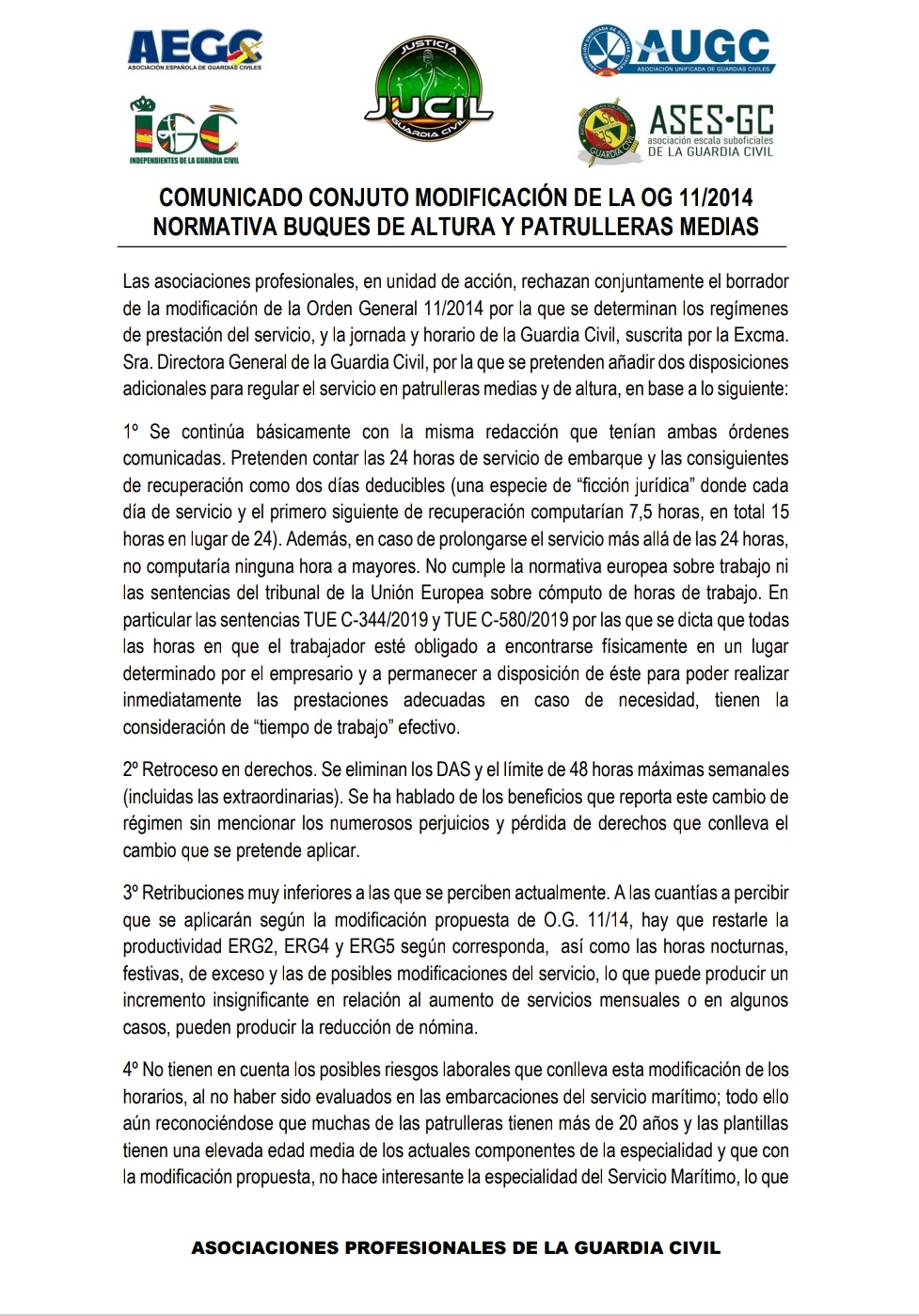 JUCIL reivindica la condición de funcionarios de los guardias civiles y solicita que se aplique esa reducción horaria dentro de la Guardia Civil disminuyendo 2’5 horas semanales la jornada presencial de los guardias civiles independientemente del régimen de jornada en que se encuentren