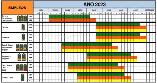 Estas actuaciones se realizan de acuerdo con los artículos 23 y 25 de la Orden General 2/2018, sobre instrucciones para la asignación de destinos y ocupación temporal de puestos de trabajo en la Guardia Civil.