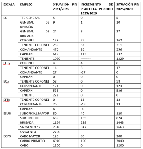 La Administración presenta un balance del trabajo realizado por el servicio de prevención de riesgos laborales en 2023 y añade que se ha solicitado aumento de catálogo en la especialidad, concretamente 6 vacantes para el empleo de comandante, 4 para capitán, 38 de teniente, 20 para brigada/subteniente.