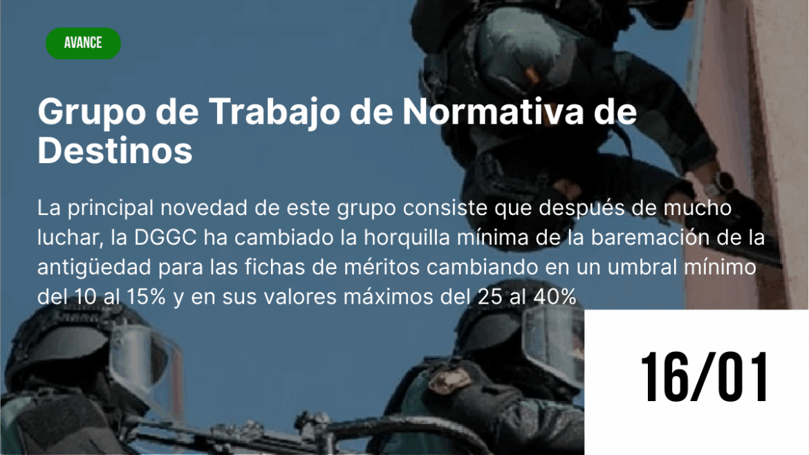Madrid, 20 de enero de 2026. Durante la mañana del día 16 de enero de 2026, asistimos al Grupo de Trabajo (GT-7) “Normativa de Destinos”, celebrada en la Dirección General de la Guardia Civil, en representación de la Asociación JUSTICIA GUARDIA CIVIL (JUCIL), donde: