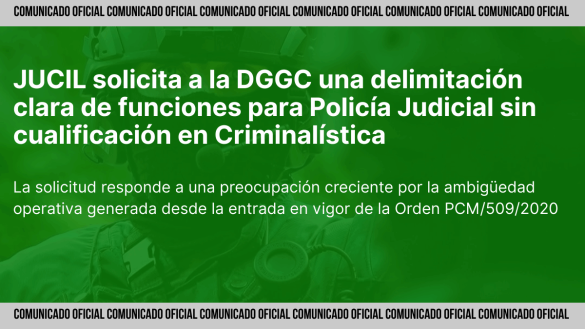 Madrid, 01 de diciembre de 2025. JUCIL ha elevado una petición formal a la Dirección General del Cuerpo para que se definan con precisión los cometidos que corresponden a los agentes de la especialidad de Policía Judicial que no disponen de formación específica en Criminalística. La solicitud responde a una preocupación creciente por la ambigüedad operativa generada desde la entrada en vigor de la Orden PCM/509/2020, que separa ambas especialidades sin concretar en la práctica qué funciones pertenecen exclusivamente a los cualificados en Criminalística.