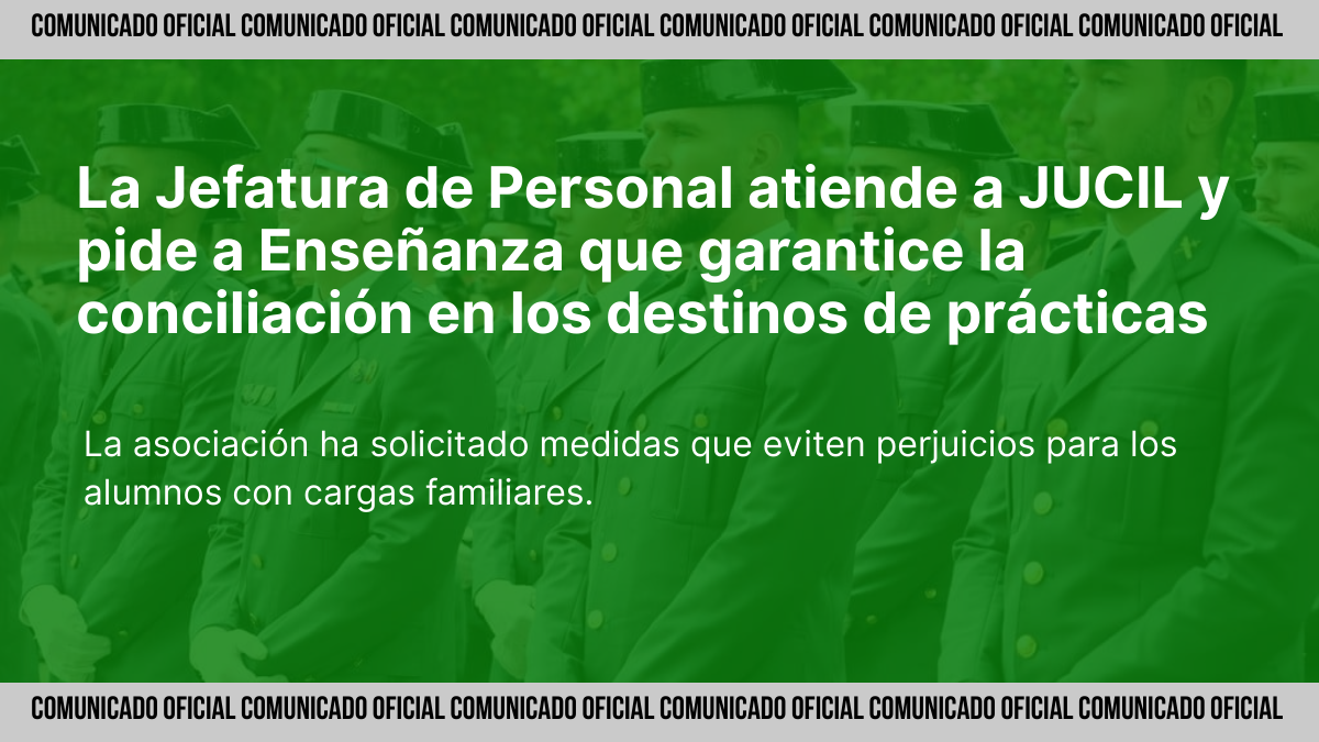 Madrid, 24 de noviembre de 2025. El Mando de Personal ha pedido a la Jefatura de Enseñanza que emita instrucciones claras a todos los centros docentes para asegurar que las situaciones de conciliación familiar de los alumnos, incluidos los guardias alumnos en prácticas, se valoren de manera individual y puedan conllevar destinos de prácticas en provincias no ofertadas inicialmente. Así lo recoge el documento oficial remitido tras la Comisión de Igualdad del 16 de septiembre, donde JUCIL reclamó medidas que eviten perjuicios para los alumnos con cargas familiares.