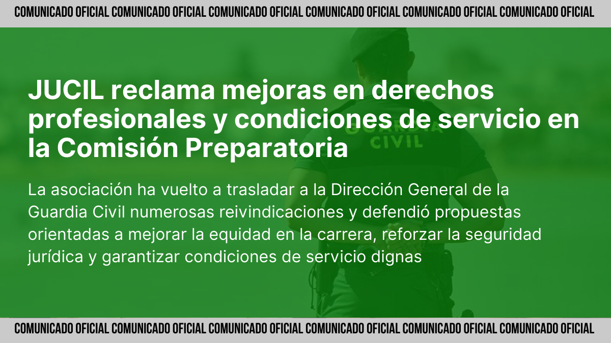 JUCIL reclama en la Comisión Preparatoria mejoras en la carrera profesional, condiciones de servicio y reconocimiento de los guardias civiles.
