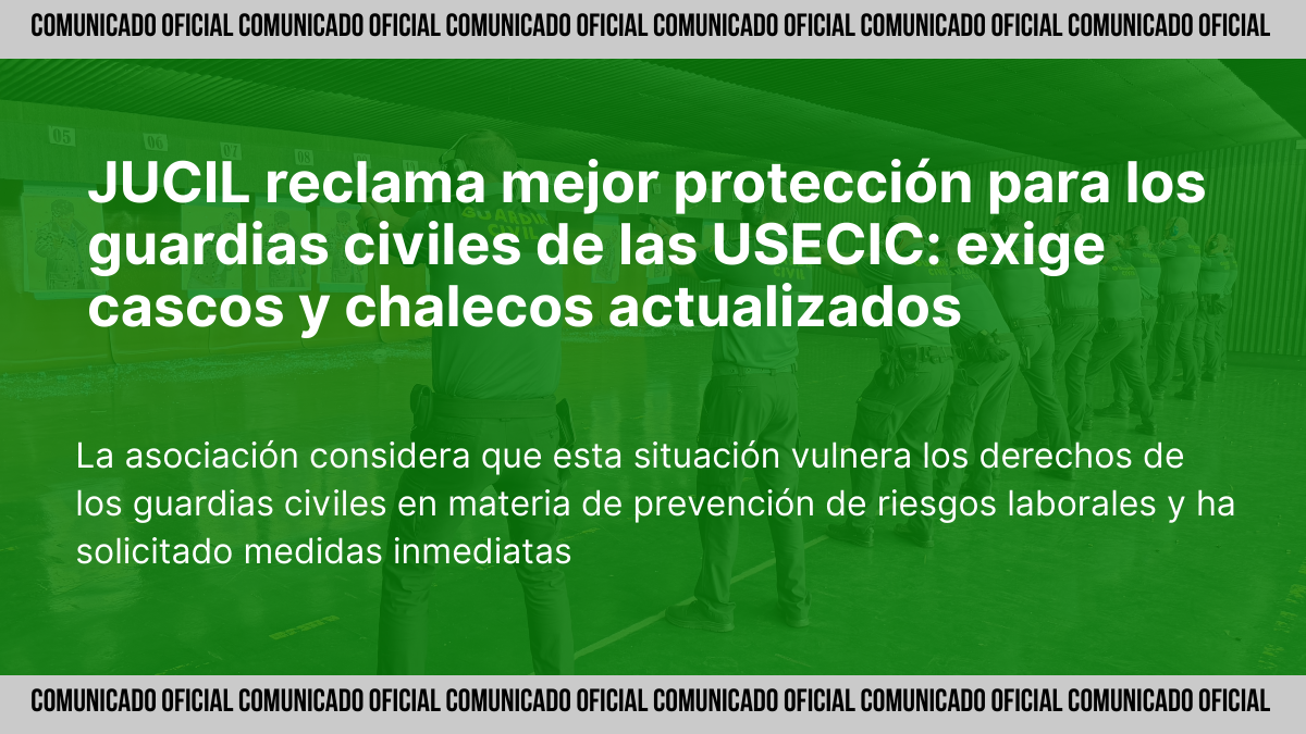 03 de diciembre de 2025. JUCIL ha solicitado formalmente a la Dirección General de la Guardia Civil una revisión urgente de las condiciones de seguridad con las que trabajan los agentes de las Unidades de Seguridad Ciudadana (USECIC), denunciando que muchos de ellos están operando con cascos balísticos caducados y chalecos obsoletos.