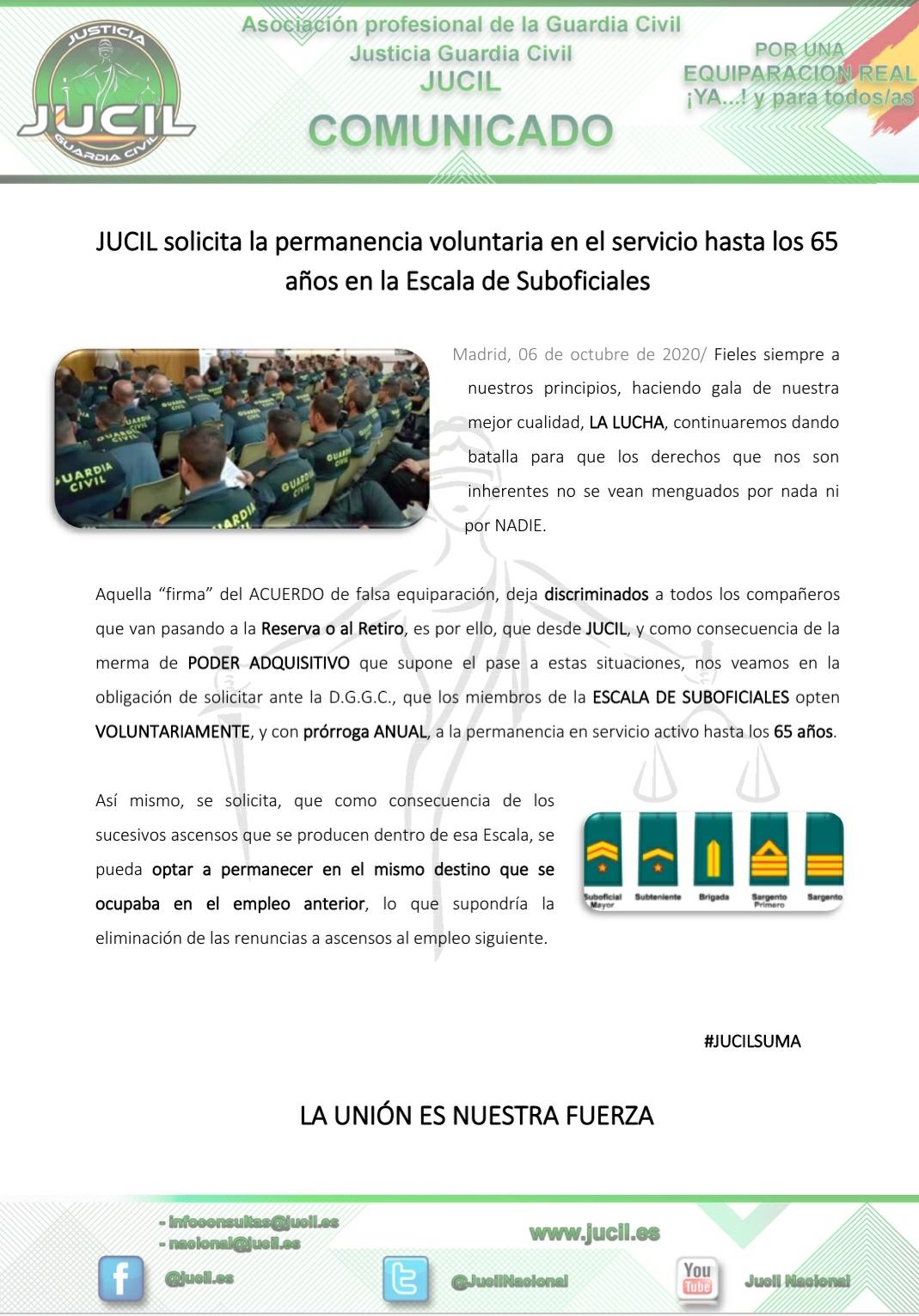 Jucil solicita la permanencia voluntaria en el servicio hasta los 65 años en la Escala de Suboficiales