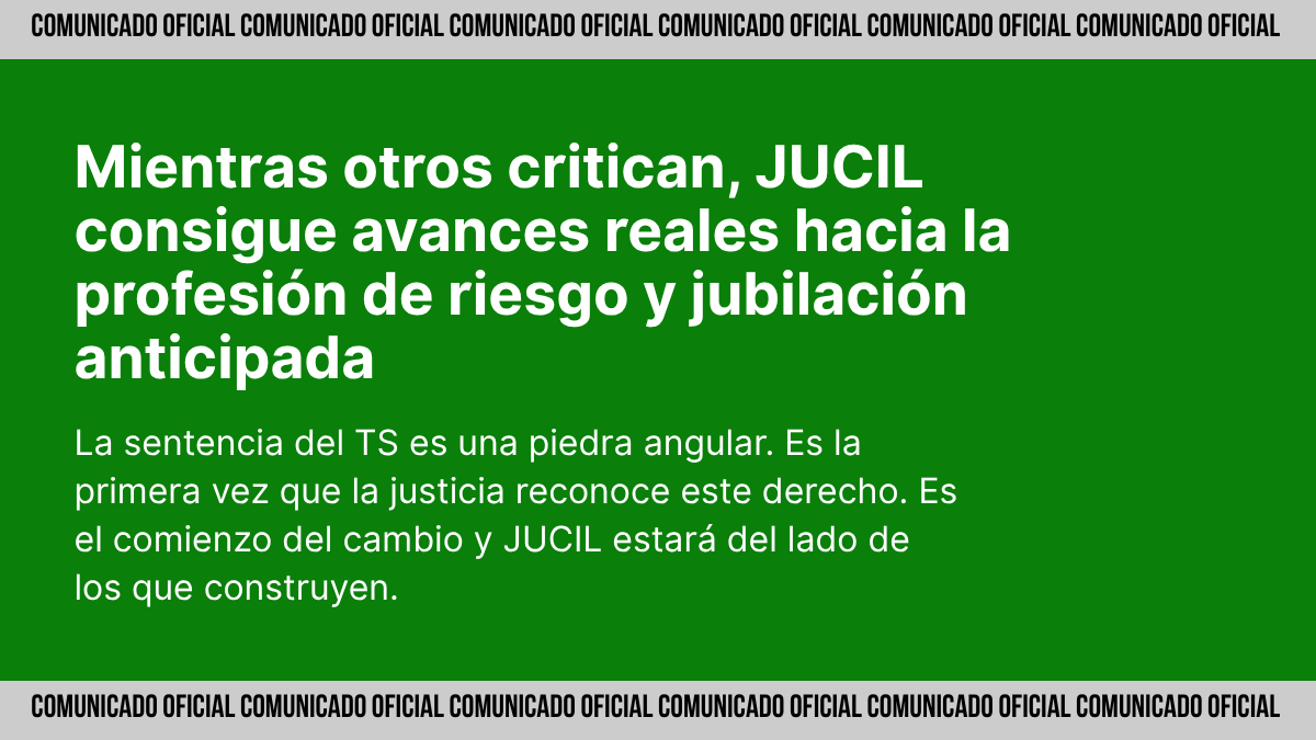 Hay momentos en los que toca mirar de frente a la realidad y decir las cosas claras, sin rodeos ni adornos. Mientras algunos siguen intentando restar valor a cada paso que damos, en JUCIL lo tenemos muy claro: hemos conseguido abrir un camino real hacia el reconocimiento de nuestra labor como profesión de riesgo y hacia una jubilación anticipada justa para todos. Y lo hemos hecho con trabajo, constancia y estrategia, no con palabras huecas ni comunicados grandilocuentes.