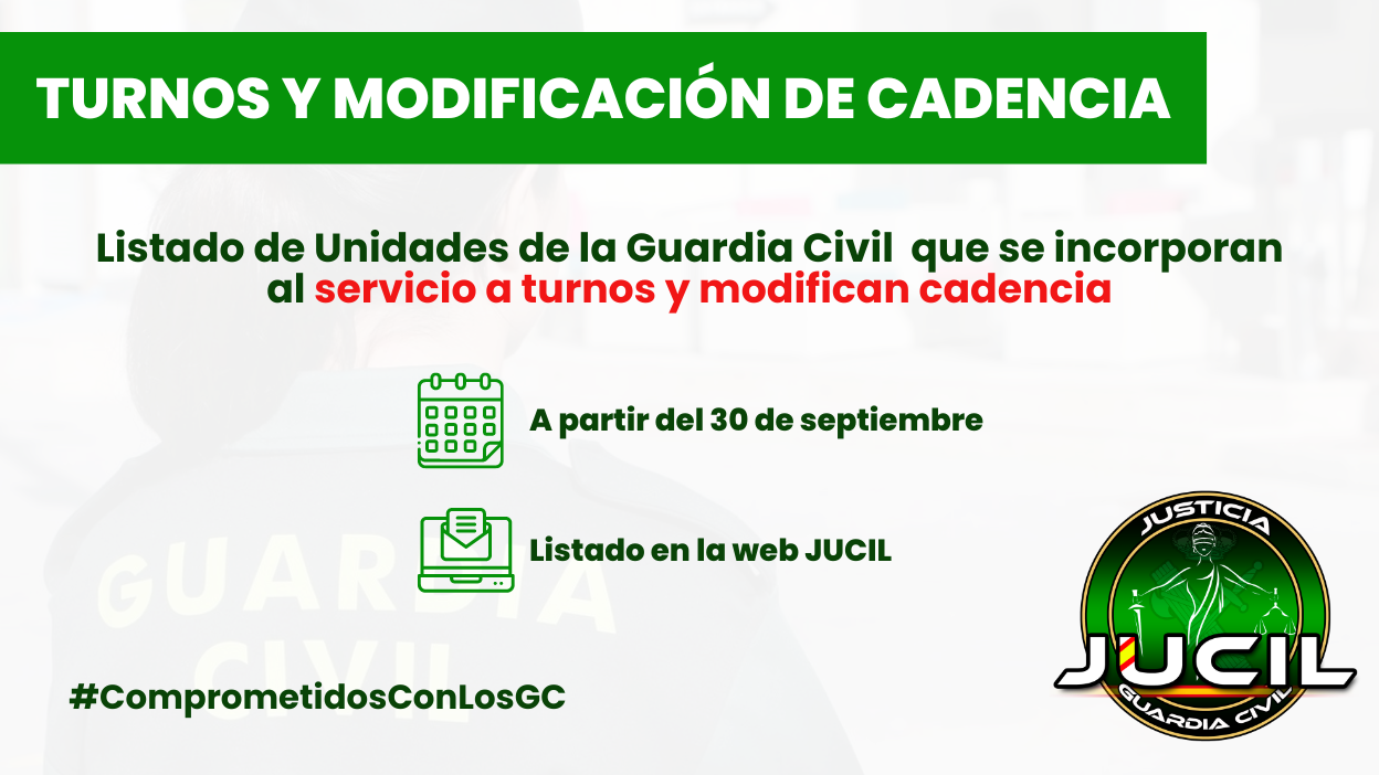 Listado de unidades de la Guardia Civil que se incorporan al servicio a turnos y modificación de cadencia a partir del 30 de septiembre