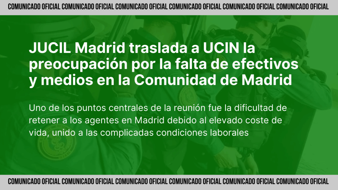 Por otro lado, Jucil ha urgido al Ayuntamiento a colaborar para encontrar una solución a la falta de un área detención propia, en un Puesto que se encuentra entre los tres con mayor número de delitos y detenidos de toda España, lo que obliga a detraer patrullas de la seguridad ciudadana para realizar traslados a otras localidades, dejando en determinados momentos una sola patrulla operativa para toda la población.
