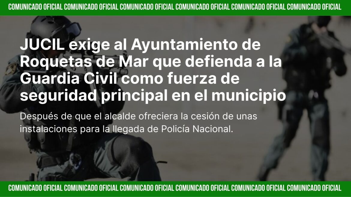 JUCIL manifiesta su frontal desacuerdo con la intención de que el Cuerpo Nacional de Policía se pueda implantar en la localidad de de Roquetas de Mar, desplazando a la Guardia Civil de sus funciones, después de que el Ayuntamiento haya ofrecido públicamente para ello instalaciones municipales de carácter temporal.